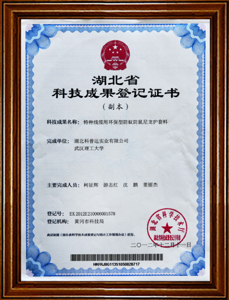 湖北省科技成果登記證書
