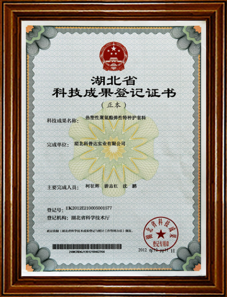 湖北省科技成果登記證書